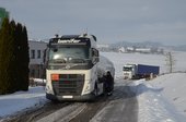 Der zweite LKW, der der eigentliche Auslöser des Einsatzes war, stand bereits seit dem Vortag auf einer Umkehrstelle und konnte ebenfalls nicht mehr weiter. Der Lenker borgte sich vom ersten LKW die Schneeketten aus, die wiederum mit Unterstützung durch die Feuerwehrkameraden angelegt wurden. Leider schaffte der Lenker es nicht, sein mit ca. 35t Kohlen beladenen Sattelzug die Straße hochzufahren. So wurde das Rüst-Lösch-Fahrzeug vorgespannt und der LKW die Straße hochgezogen.