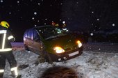 Einem Zeitungszusteller dürften die winterlichen Fahrbahnverhältnisse kombiniert mit kaum Profil auf den Reifen zum Verhängnis geworden sein. Er rutsche auf eigentlich ebener Straße in den Graben und konnte aus eigener Kraft nicht mehr zurück.