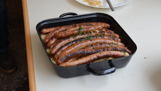 Schon zeitig in der Früh wurden die Griller eingeheizt, um genügend Hitze zum Grillen von unzähligen Bratwürstelpaaren zu haben. Und auch die Gäste ließen nicht lange auf sich warten. Schnell füllte sich die Halle bis auf den letzten Platz. Bei bester Stimmung schmeckten die Würstel gleich noch einmal besser.