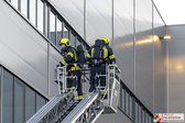 Arbeiter am Dach lösten unfreiwillig einen Brand aus, der durch einen Druckknopfmelder der Brandmeldeanlage gemeldet wurde. Über die Lüftungsanlage wurde das gesamte Firmengebäude verraucht. So die Übungsannahme.