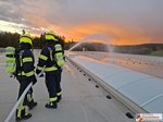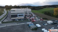 Eine groß angelegte Übung mit insgesamt 11 Feuerwehren führte die Feuerwehr Meggenhofen am Freitag, den 24.10.2025 im neu errichteten Betriebsgebäude der Fa. ETA in Trappenhof durch. Ein Brandausbruch am Firmendach führte schließlich zur Alarmierung der Alarmstufe II.