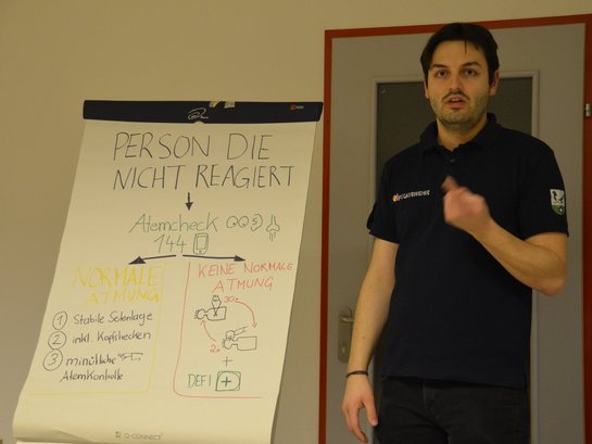 In Begleitung angehender Ärzte und Rettungssanitäter (alle aus den eigenen Reihen) wurden die Basics der Ersten Hilfe aufgefrischt. Dazu gehört auf jeden Fall die Wiederbelebung (Beatmung, Herzdruckmassage), aber auch das Erkennen und Deuten von Symptomen für Herzinfarkt oder Schlaganfall.