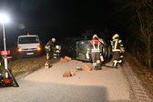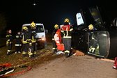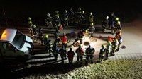 Auf dem Weg zum Einsatzort wurde die Anfahrt durch einen verunfallten PKW blockiert. In diesen Unfall waren zwei Personen involviert. Eine Person musste aus dem inneren des Fahrzeuges gerettet werden, eine zweite kam unterhalb des Fahrzeuges zu liegen.