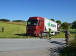 Kurze Zeit später konnten zwei Fahrzeuge zur Einsatzstelle ausrücken. Vorort wurde der in der Wiese stecken geblieben LKW-Sattelzug vorgefunden. Leider sprach der Fahrer kein Wort deutsch, so musste mühsam mittels Handy-Translater kommuniziert werden.