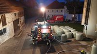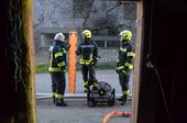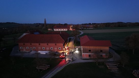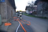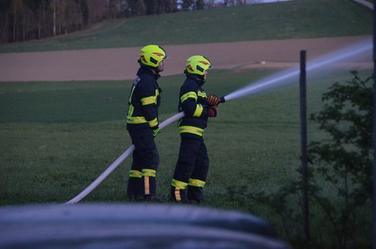 Am Objekt war bereits das Rüst-Lösch-Fahrzeug der Feuerwehr Meggenhofen im Einsatz und stellte zusätzlich einen Atemschutztrupp, der eine Personenrettung aus der verrauchten Brandhütte durchzuführen hatte.
