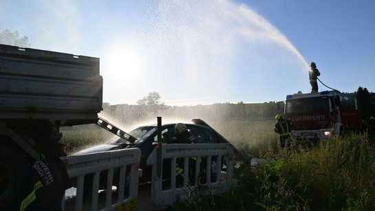 Als Abschluss der 3-teiligen technischen Ausbildungseinheit fand am Mittwoch, den 12.06.2024 eine Einsatzübung mit der Nachbarsfeuerwehr Kematen am Innbach statt. Es galt einen komplexen Verkehrsunfall aufzuarbeiten. Nicht weniger als sieben Statisten mussten von den beiden Feuerwehren gerettet werden.