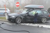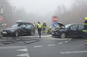 Am Vormittag des 16.11.2025, gegen 10.30 Uhr, stießen zwei Fahrzeuge aus unbekannten Gründen im Bereich der Autobahnabfahrt und der Einmündung auf die L519 zusammen.