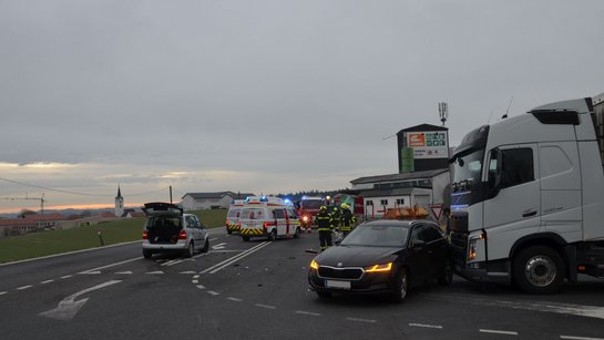 Um den Unfallbereich schneller frei zu bekommen, wurde ein Fahrzeug mittels Rangierroller zur Seite gestellt. Ein Abschleppunternehmen barg anschließend die beiden demolierten PKW´s. Der LKW konnte seine Fahrt selbstständig fortsetzen.