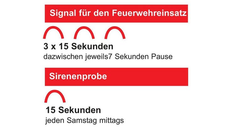 Ein dreimaliger 15 Sekunden langer Dauerton mit einer Pause von 7 Sekunden dazwischen, ist das Einsatzsignal für die Feuerwehr.