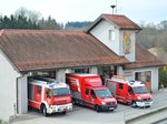 Das Feuerwehrhaus wurde mit drei Toren und wie es für die damalige Zeit üblich war, mit den entsprechenden Räumlichkeiten, wie: Funkraum, Werkstätte, Atemschutzraum, Schulungsraum, Schlauchturm, Schlauchwaschraum und Sanitärräumen ausgeführt. Die Spinde der Mannschaft befinden sich in der Fahrzeughalle, die mit drei Stellplätzen schon wieder zu klein geworden ist. Schon damals kursierte der Sparstift und so musste das geplante vierte Tor gestrichen werden. Ein hölzerner Unterstand, errichtet 2013 in Eigenregie, sollte in der Fahrzeughalle wieder etwas mehr Platz schaffen.